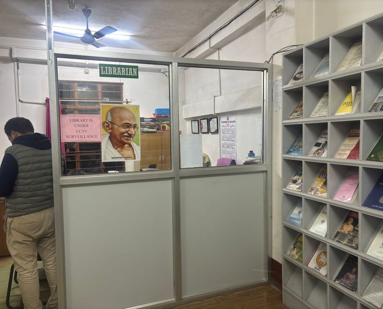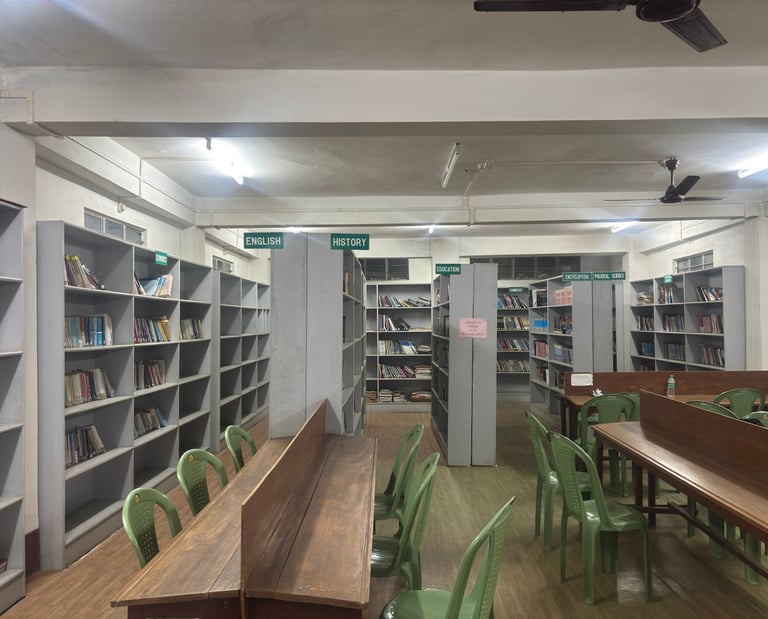Equipped with an automated system for efficient book location and management. Includes a property counter, librarian's cabin, circulation and processing counter (Issue/Return), stacks, textbook section, periodical section, reference section, and book bank. Provides 20 Mops internet bandwidth for INFLIBNET e-resources, Uses SOUL 2.0 Software for library automation. accessible to both teachers and students. Features a dedicated reading area for faculty and students.
